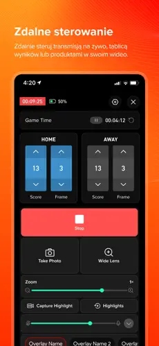 Aplikacja pozwala na prowadzenie transmisji w wysokiej rozdzielczości, co gwarantuje profesjonalny wygląd streamów – niezależnie od tego, czy prowadzisz vlog, webinar czy sprzedaż online.