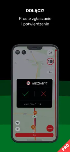 Użytkownicy mogą dodawać własne zgłoszenia radarów i przeszkód – dzięki temu baza jest zawsze aktualna.