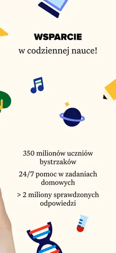 Obszerna baza wiedzy – miliony pytań i odpowiedzi z różnych przedmiotów, takich jak matematyka, biologia, historia, języki obce czy chemia.