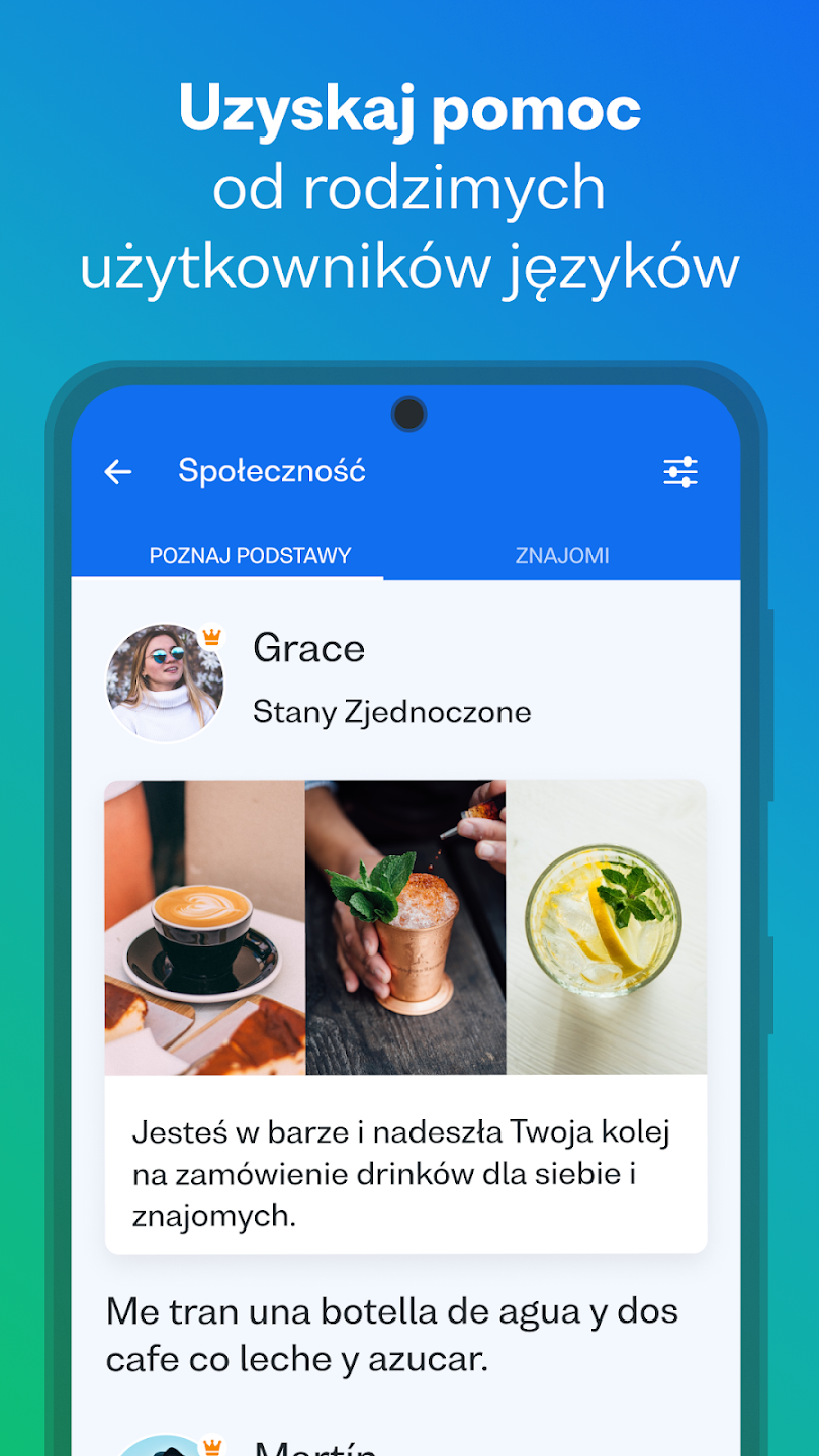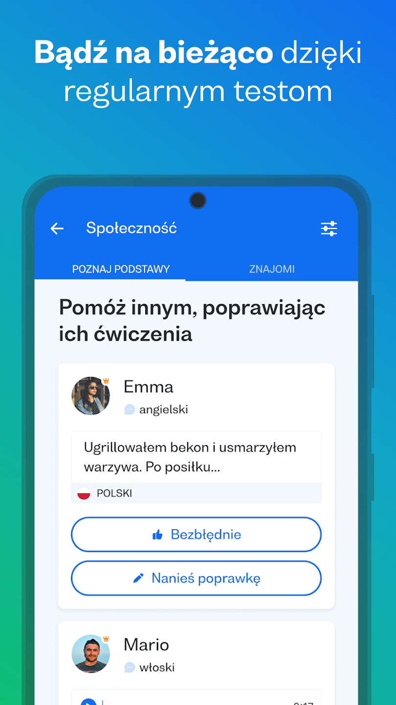 Jedną z największych zalet Busuu jest globalna społeczność użytkowników. Możesz: