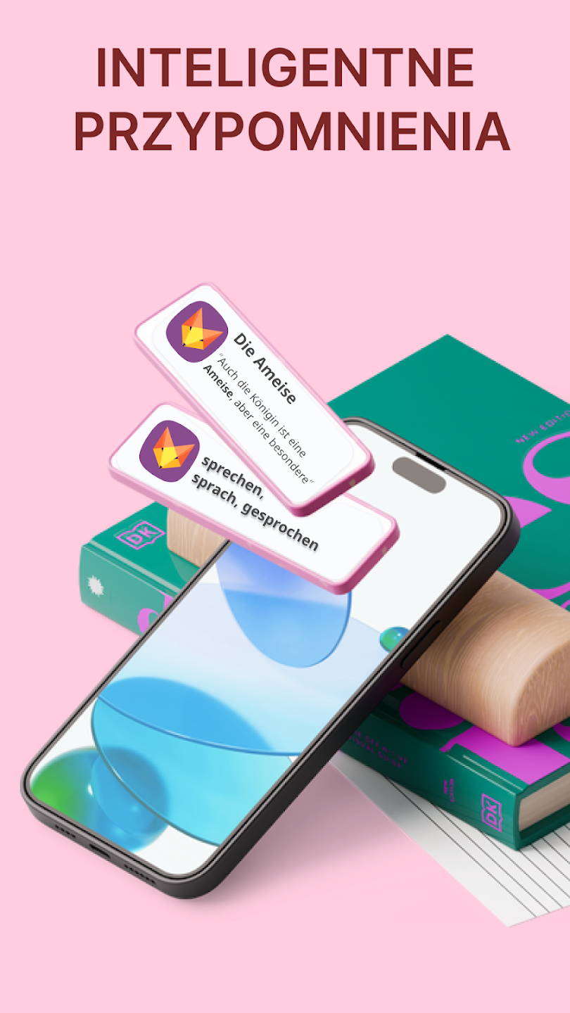 Fiszki słówka wykorzystują mechanizm powtórek oparty na krzywej zapominania. Dzięki temu aplikacja przypomina słówka dokładnie wtedy, gdy istnieje ryzyko ich zapomnienia.
