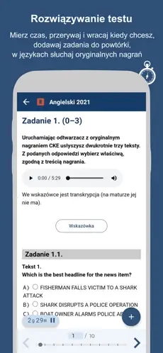 Najważniejsze funkcje aplikacji Matura – testy i zadania
