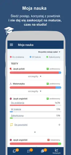 Rozwiązuj testy i sprawdzaj swoje postępy.