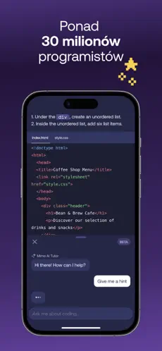 Mimo jest idealnym rozwiązaniem dla osób, które dopiero zaczynają naukę programowania, ale także dla tych, którzy chcą uporządkować wiedzę lub nauczyć się nowych technologii. Aplikacja prowadzi użytkownika krok po kroku – od podstawowych pojęć po bardziej zaawansowane zagadnienia.