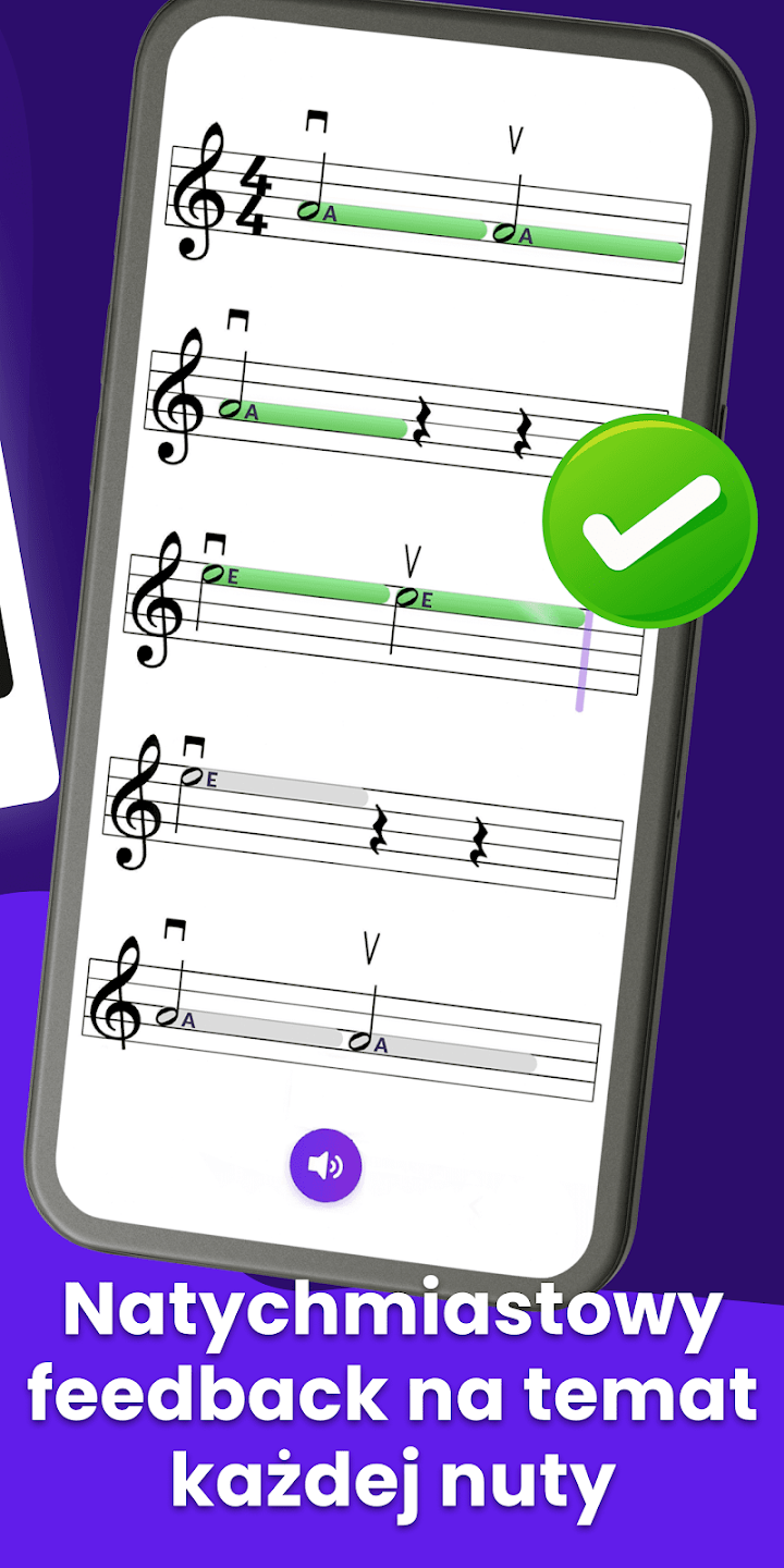 Użytkownik może ćwiczyć z prawdziwymi zapisami nutowymi oraz akompaniamentem, co pomaga rozwijać poczucie rytmu i muzykalność.
