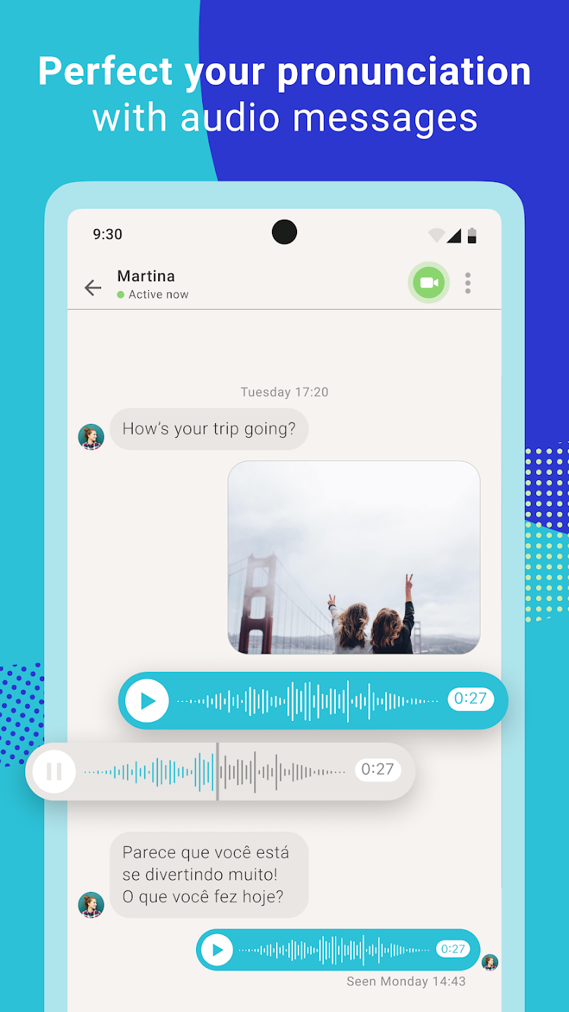 Aplikacja łączy ludzi o podobnych celach językowych, pozwalając im wzajemnie uczyć się swoich języków ojczystych.