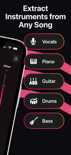 Główną funkcją aplikacji Stemz jest inteligentna separacja ścieżek audio. Za pomocą algorytmów AI użytkownik może szybko oddzielić: