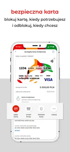 Aplikacja pozwala szybko sprawdzić saldo, historię transakcji, stan kart, lokat i kredytów. Panel główny można dostosować do własnych potrzeb.