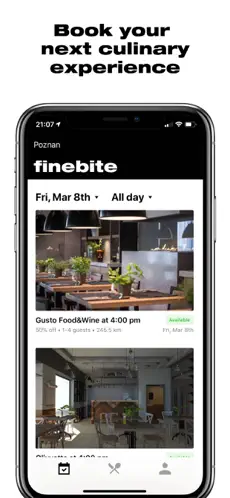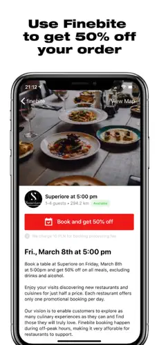 Finebite to nowoczesna aplikacja mobilna, która umożliwia rezerwowanie stolików w najlepszych restauracjach z atrakcyjnymi zniżkami sięgającymi nawet 50%. Dzięki Finebite masz szansę spróbować dań w renomowanych lokalach w Twoim mieście w znacznie niższej cenie, bez rezygnacji z jakości ani wyjątkowej atmosfery.