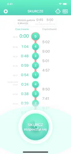 mierzyć czas trwania każdego skurczu