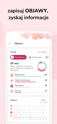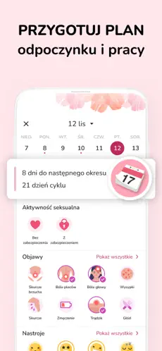 Użytkowniczki mogą zapisywać objawy, nastrój oraz inne obserwacje związane z cyklem.