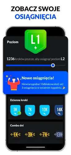 Ustal własny cel dzienny liczby kroków i otrzymuj powiadomienia o jego realizacji. Regularne przypomnienia pomogą Ci utrzymać motywację i zdrowy rytm dnia.