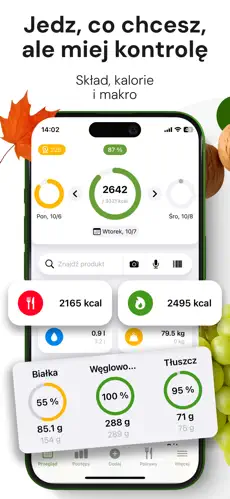 | ✅ Precyzyjna kontrola diety | Śledź każdy posiłek i bilans energetyczny |