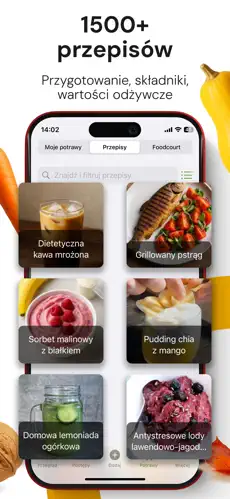 Dine4Fit zawiera tysiące polskich i międzynarodowych produktów spożywczych wraz z dokładnymi wartościami odżywczymi.