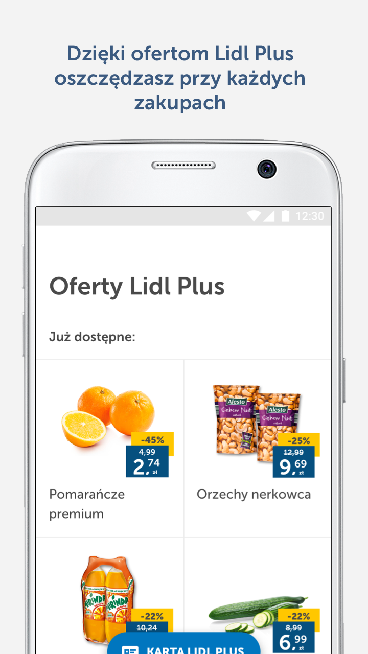 Cyfrowa karta Lidl Plus – wystarczy zeskanować kartę w telefonie przy kasie, aby skorzystać z promocji.