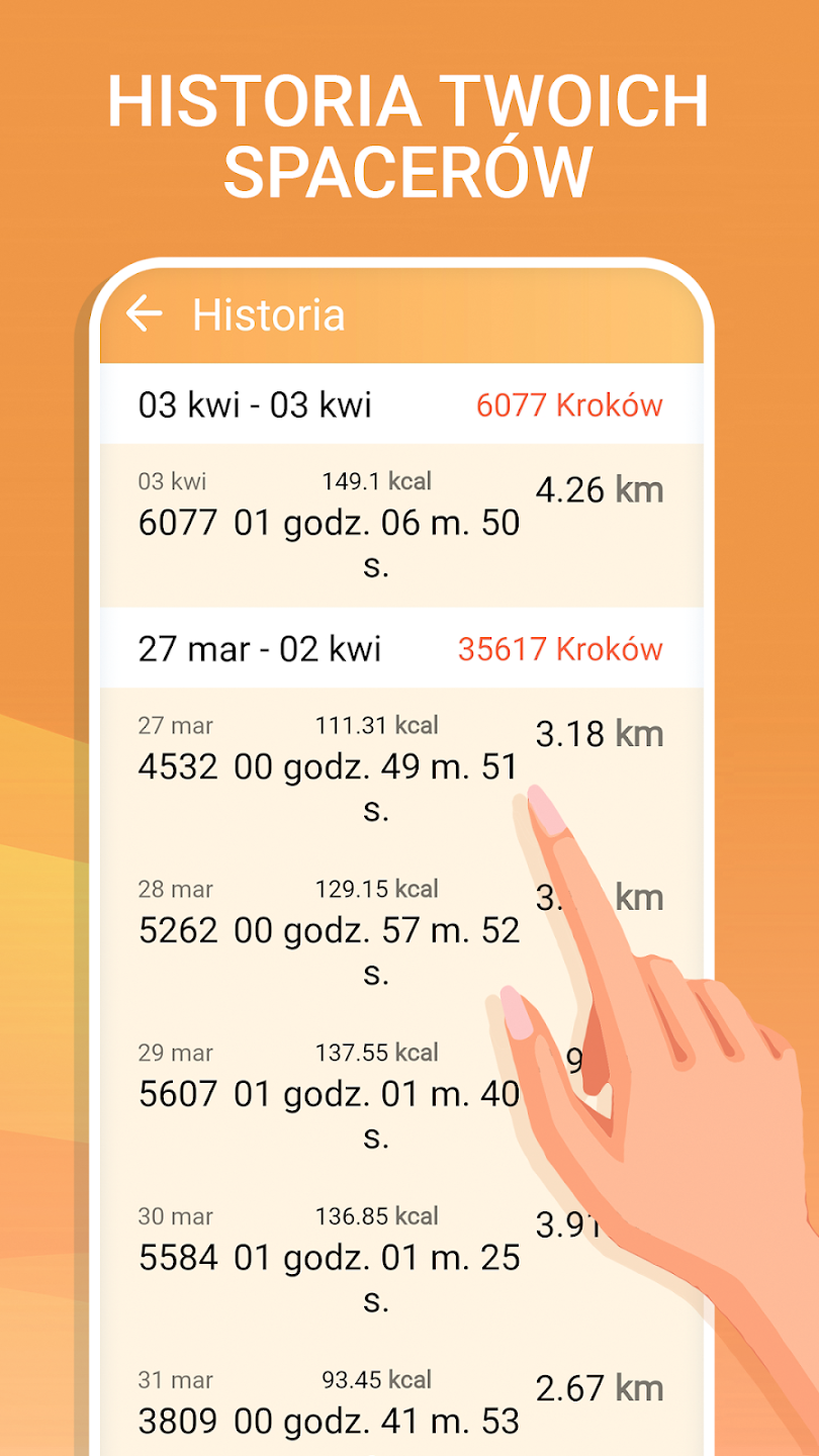 Aplikacja umożliwia ustawienie dziennych celów, takich jak liczba kroków lub czas ruchu. Dzięki temu łatwiej budować regularne nawyki, a wizualne podsumowania postępów działają motywująco każdego dnia.