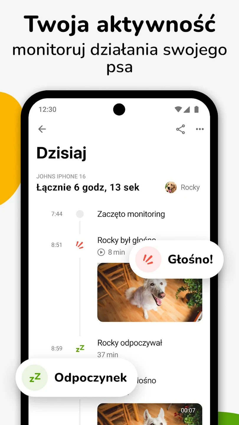 Monitorowanie dźwięków – aplikacja wykrywa szczekanie, wycie i inne odgłosy, wysyłając Ci powiadomienia.