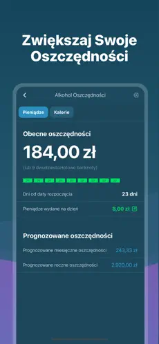 Śledzenie oszczędności – funkcja pokazuje, ile pieniędzy udało się zaoszczędzić dzięki rezygnacji z używek.