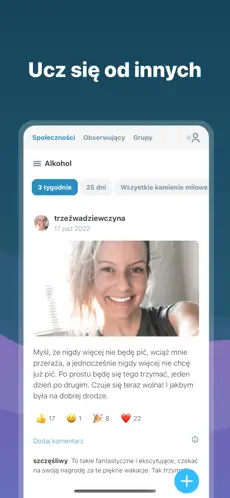 Dodatkowo społeczność I Am Sober to ogromna zaleta – możliwość rozmowy z osobami, które przechodzą przez podobne doświadczenia, daje poczucie zrozumienia i siły do dalszej walki.