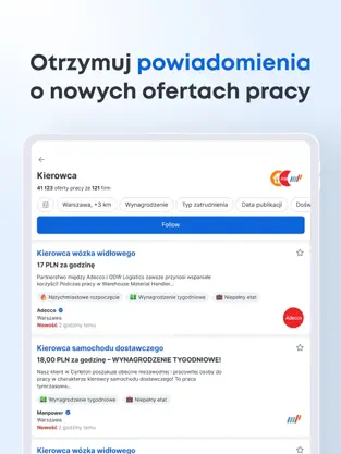 • Bezpośrednie aplikowanie – Aplikuj na oferty pracy bezpośrednio z poziomu aplikacji.