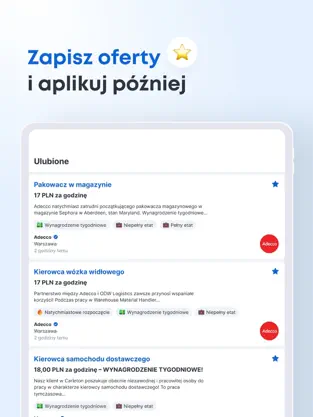 • Bezpośrednie aplikowanie – Aplikuj na oferty pracy bezpośrednio z poziomu aplikacji.