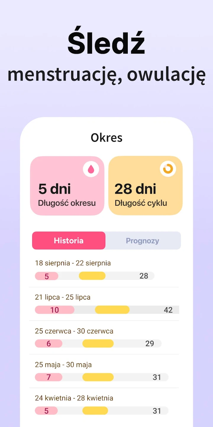 Mój kalendarz miesiączkowy to intuicyjna i praktyczna aplikacja stworzona dla kobiet, które chcą w prosty sposób monitorować swój cykl miesiączkowy, dni płodne, owulację oraz ogólne samopoczucie. Dzięki rozbudowanym funkcjom i prostemu interfejsowi aplikacja stała się jednym z najpopularniejszych narzędzi do śledzenia cyklu i planowania ciąży.