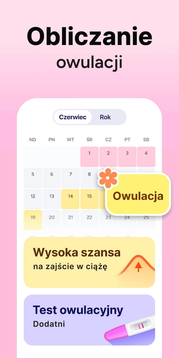 Mój kalendarz miesiączkowy wylicza najbardziej prawdopodobny okres owulacji oraz dni zwiększonej płodności. To doskonałe narzędzie zarówno dla kobiet planujących ciążę, jak i tych, które chcą lepiej zrozumieć swoje ciało.
