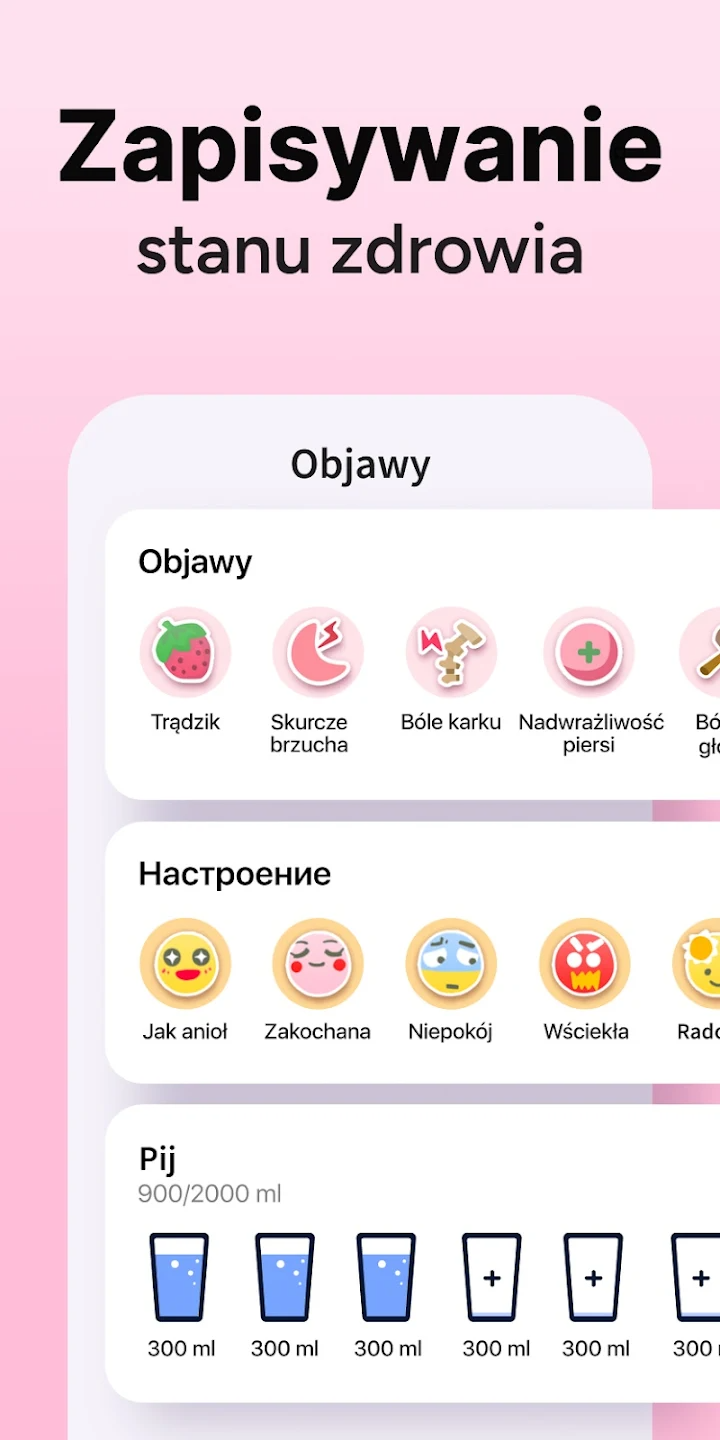 Aplikacja wysyła powiadomienia przypominające o zbliżającej się miesiączce, owulacji, a także o przyjmowaniu leków lub suplementów. Pomaga to lepiej planować dzień i unikać niespodzianek.