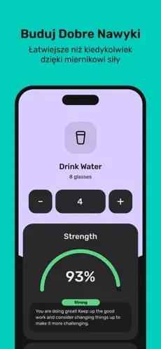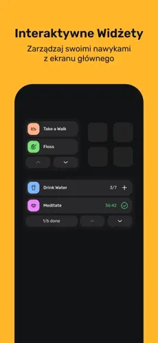 Aplikacja nagradza ciągłość w wykonywaniu nawyków, co dodatkowo zwiększa motywację do działania.