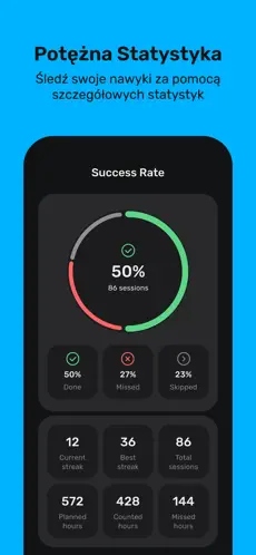 Motivated oferuje czytelne statystyki oraz wykresy, które pokazują Twoje postępy w czasie. To doskonałe narzędzie do analizy własnej skuteczności.