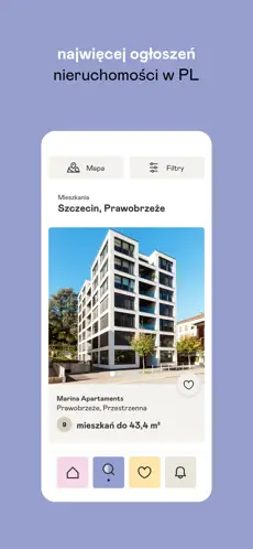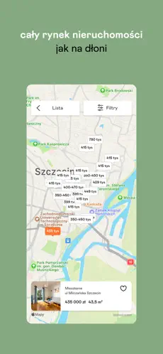 • Mapa interaktywna – przeglądaj ogłoszenia bezpośrednio na mapie i znajdź nieruchomość w idealnej lokalizacji.
