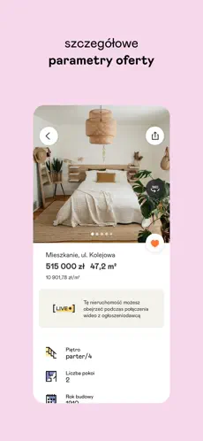 • Zapis ulubionych – łatwo zapisuj interesujące Cię nieruchomości i wracaj do nich w dowolnym momencie.