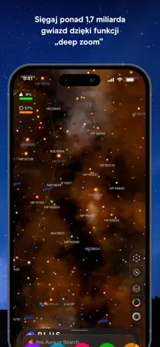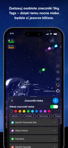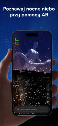 Dzięki funkcji rozszerzonej rzeczywistości użytkownik może łatwo zidentyfikować obiekty widoczne na nocnym niebie.