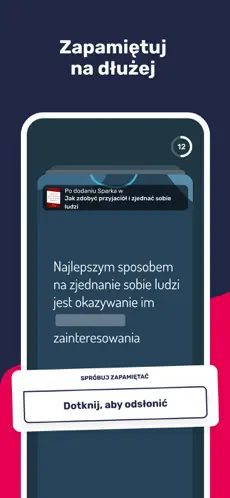 Algorytm aplikacji podpowiada treści oparte na Twoich zainteresowaniach, dzięki czemu nauka jest bardziej spersonalizowana i efektywna.