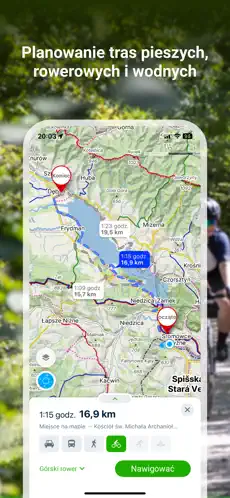 - Rejestracja aktywności – śledź swoje wycieczki, dystans, prędkość i zapisuj statystyki.