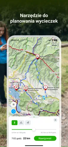 - Trasy piesze i trekkingowe – tysiące gotowych tras turystycznych w Polsce i na świecie.