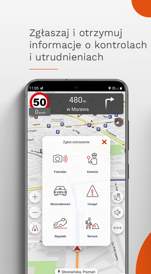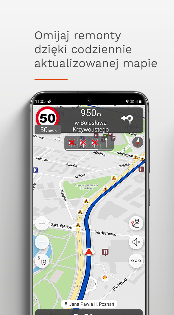 🛣️ Nawigacja w czasie rzeczywistym: Aplikacja na bieżąco analizuje sytuację na drogach i automatycznie wyznacza najszybszą trasę.