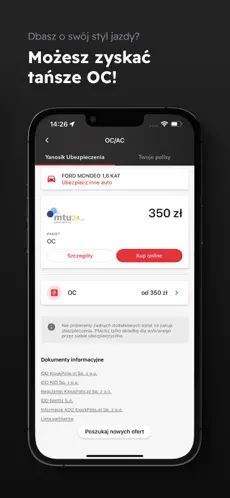 Odkrywaj dodatkowe funkcje: radio, zakup ubezpieczenia, porównywarka cen paliw i wiele innych.