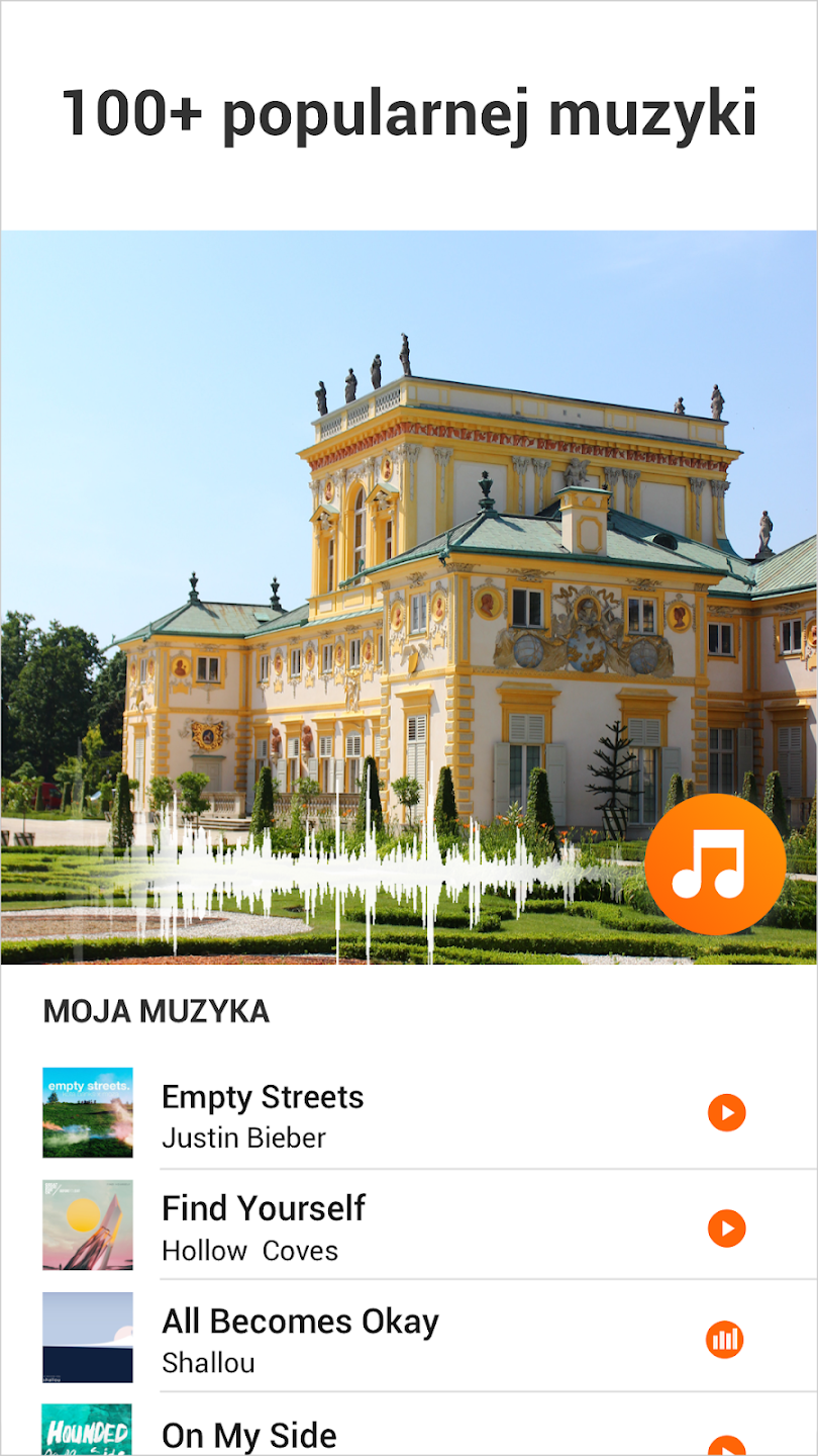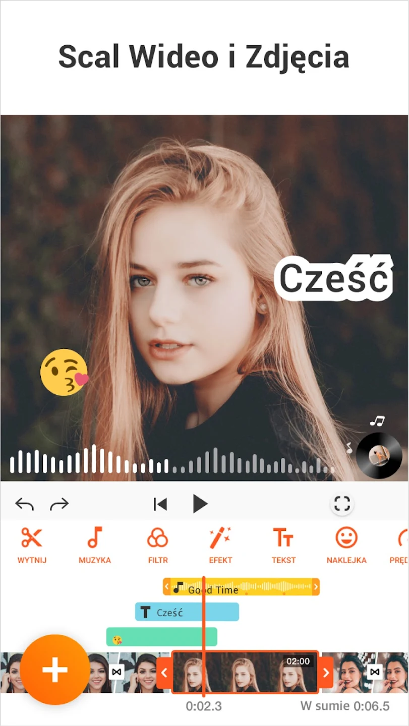 - Dodawanie muzyki i dźwięku – korzystaj z darmowej biblioteki muzyki lub dodaj własne utwory.