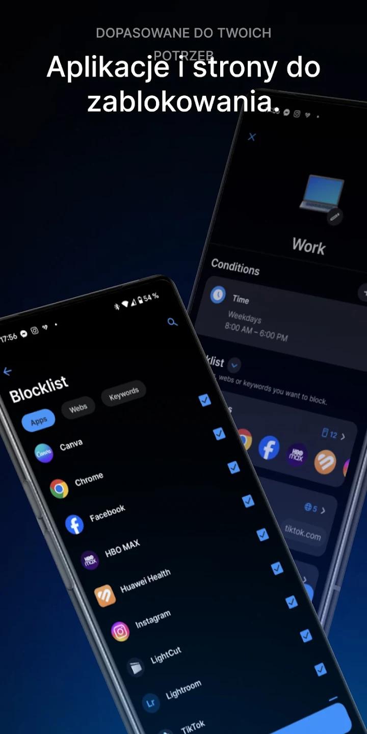 Ogranicz dostęp do stron, które pochłaniają czas, zarówno w przeglądarce, jak i w aplikacjach.