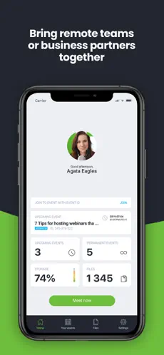 • Webinary na żywo i nagrania – organizuj lub dołączaj do spotkań w czasie rzeczywistym.