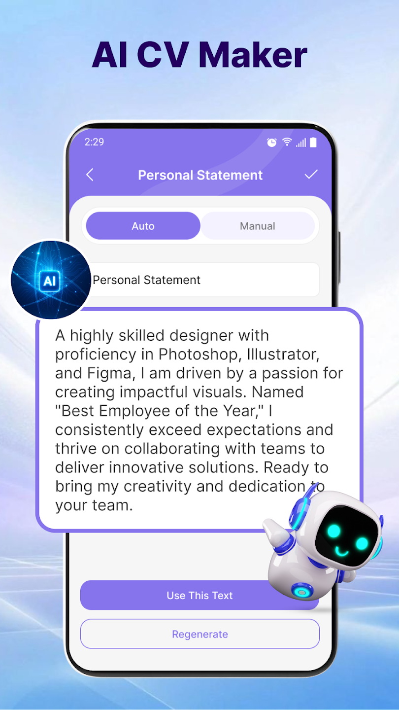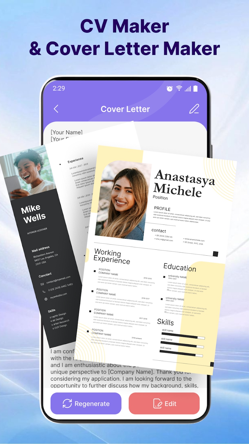 CV Maker – AI Resume Builder to aplikacja mobilna i narzędzie online, które umożliwia szybkie tworzenie CV przy wsparciu technologii AI. Pomaga użytkownikom przygotować dokument zgodny z aktualnymi standardami rekrutacyjnymi.