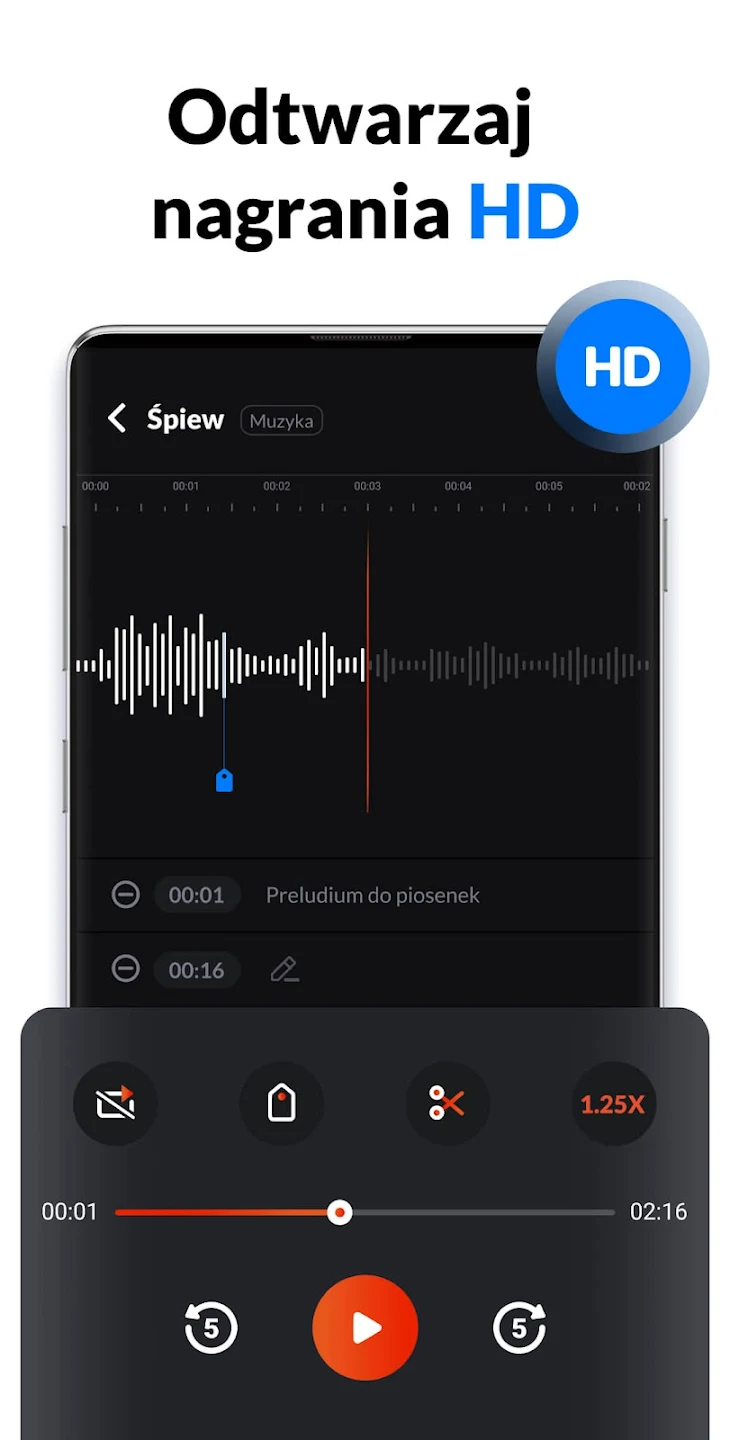 Wysoka jakość nagrań – czysty i wyraźny dźwięk.