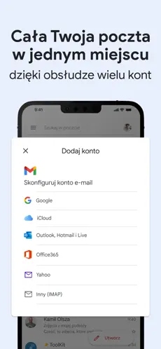 Aplikacja pozwala na zarządzanie kilkoma skrzynkami e-mail w jednym miejscu.