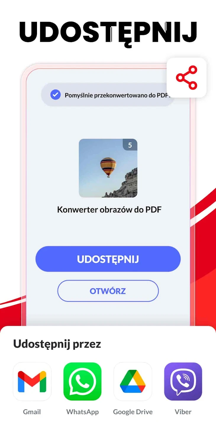 Najważniejszą funkcją aplikacji jest możliwość błyskawicznej konwersji obrazów JPG do plików PDF. Proces ten zajmuje zaledwie kilka sekund i nie wymaga skomplikowanych ustawień.