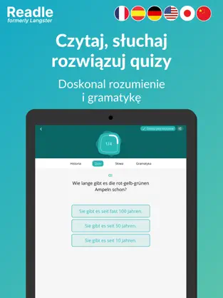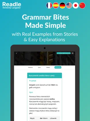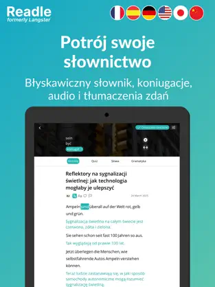 Readle – Nauka Języków to innowacyjna aplikacja językowa, która umożliwia skuteczną naukę niemieckiego (oraz innych języków) poprzez czytanie ciekawych artykułów i realistycznych dialogów. Dzięki połączeniu tekstu, audio i interaktywnych ćwiczeń, uczysz się naturalnie – tak jak dziecko uczy się ojczystego języka.