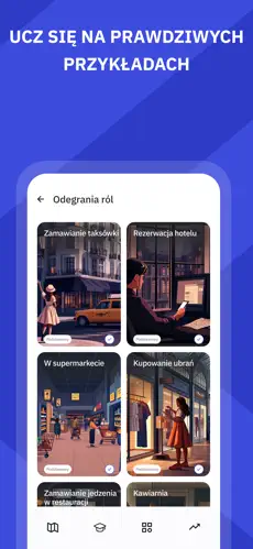Aplikacja automatycznie dostosowuje tempo nauki do użytkownika, analizując jego postępy i wyniki ćwiczeń.