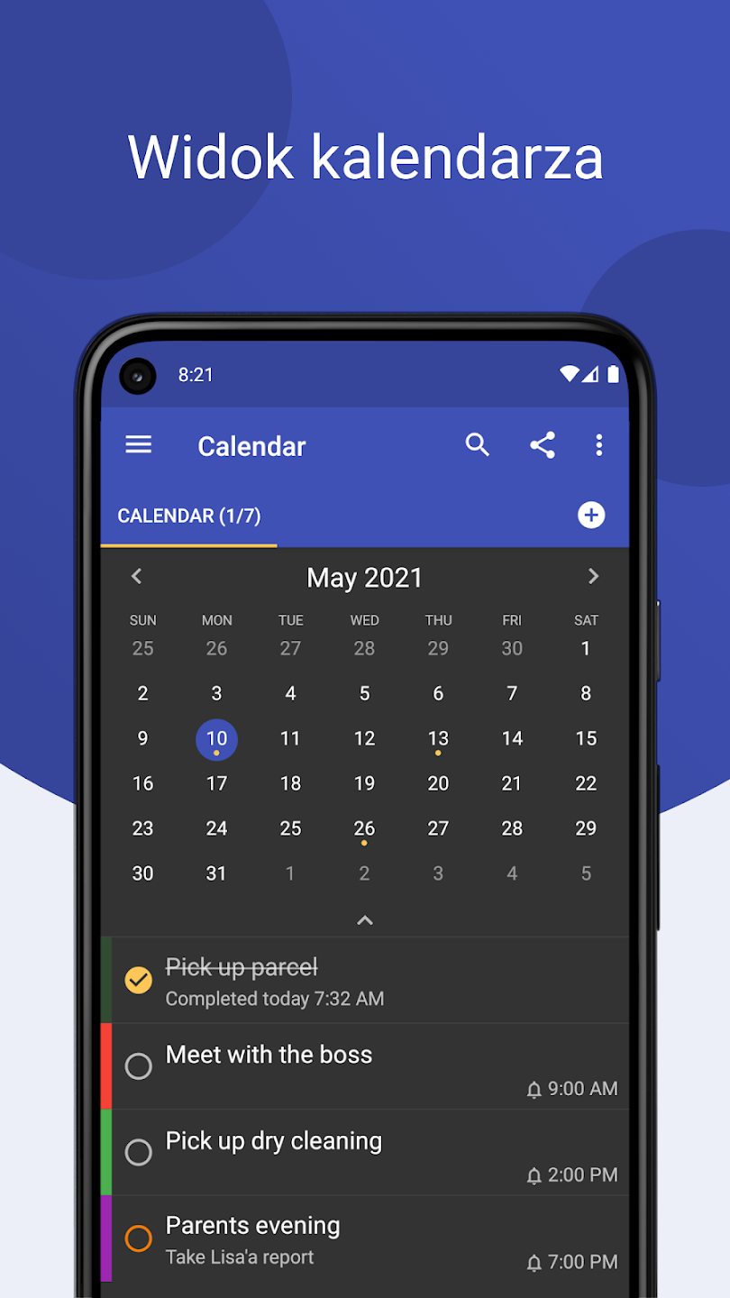Dzięki funkcji przypomnień użytkownik nie zapomni o ważnych terminach, spotkaniach czy codziennych obowiązkach.
