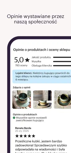 • Ulubione i listy życzeń – zapisuj inspiracje i śledź swoich ulubionych sprzedawców.