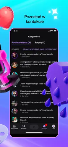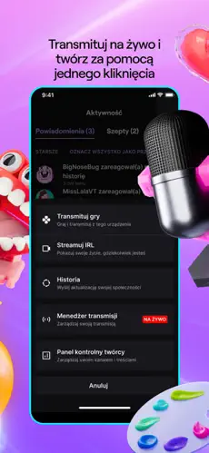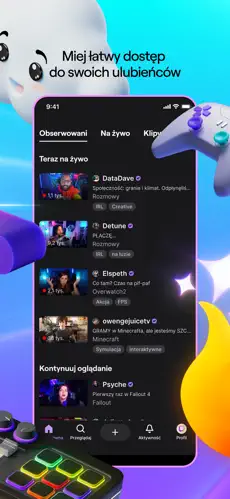 • Powiadomienia – otrzymuj alerty, gdy Twoi ulubieni streamerzy rozpoczynają transmisję.